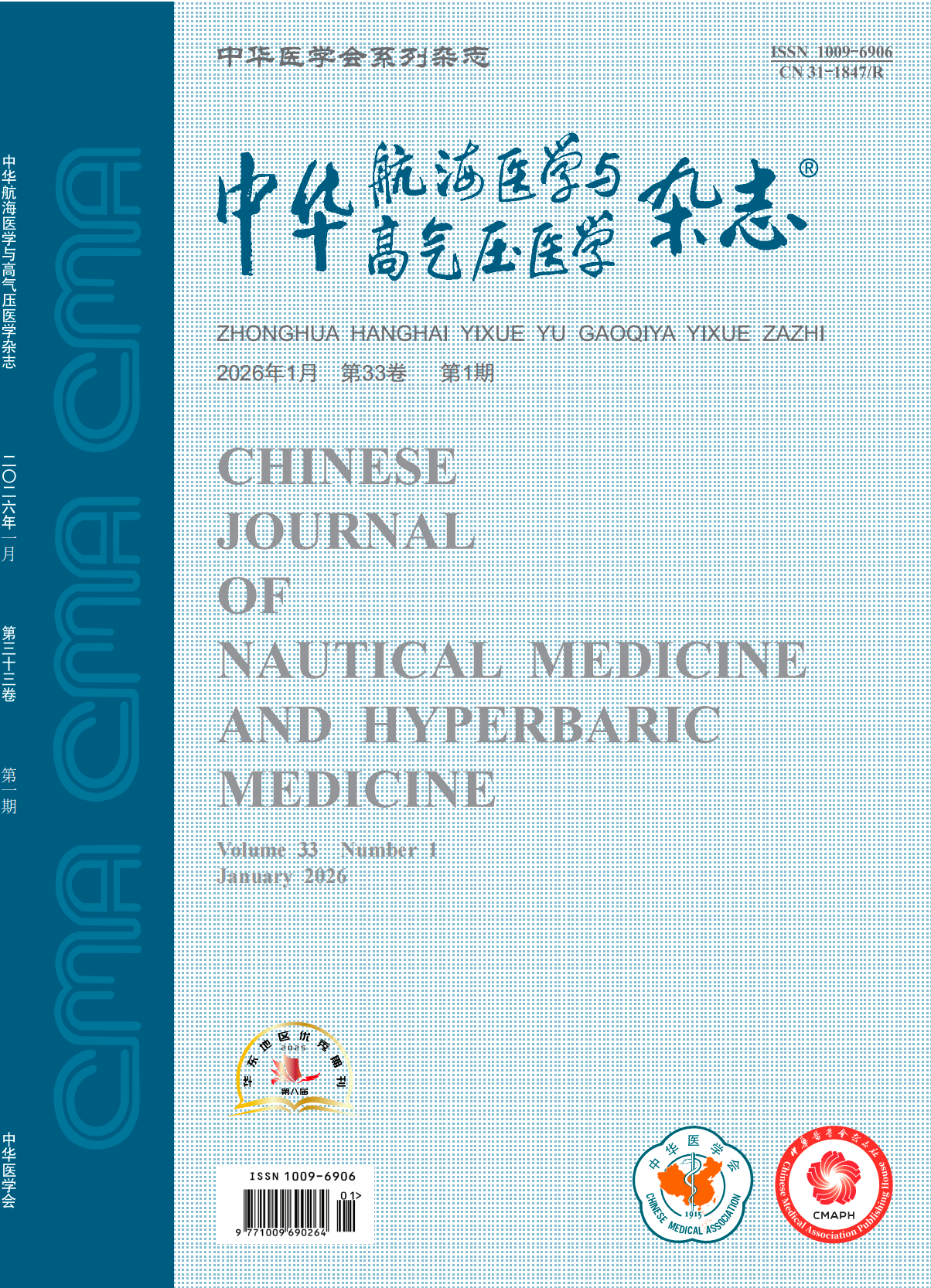 《中华航海医学与高气压医学杂志》创刊于1994年,2025年起由双月刊改为月刊,由中华医学会主办、中国科学技术协会主管的中华医学系列期刊之一,是我国航海医学、高压氧医学、潜水医学领域唯一的科技核心期刊,中国科技论文统计源期刊。先后被SCOPUS数据库、美国《化学文摘》(CA)、俄罗斯《文摘杂志》(AJ)、《中文核心期刊要目总览》等数据库收录。多次评为中华医学会优秀期刊、华东地区优秀期刊、上海高校优秀期刊。